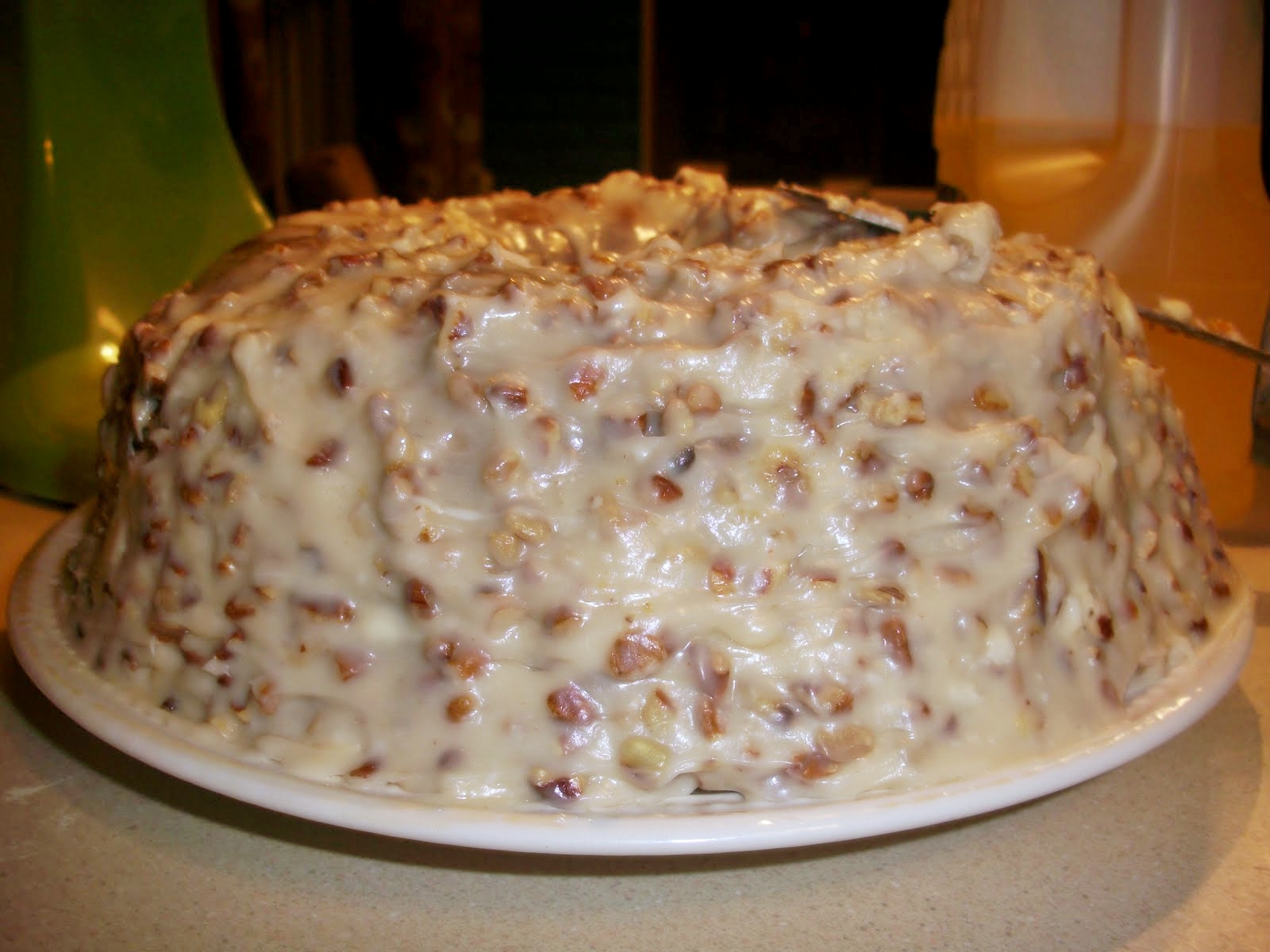 Combine all this and spread it on a cooled cake (I am always way too impatient and put it on the while it’s still warm and then the icing melts off. Don’t let this happen to you.)